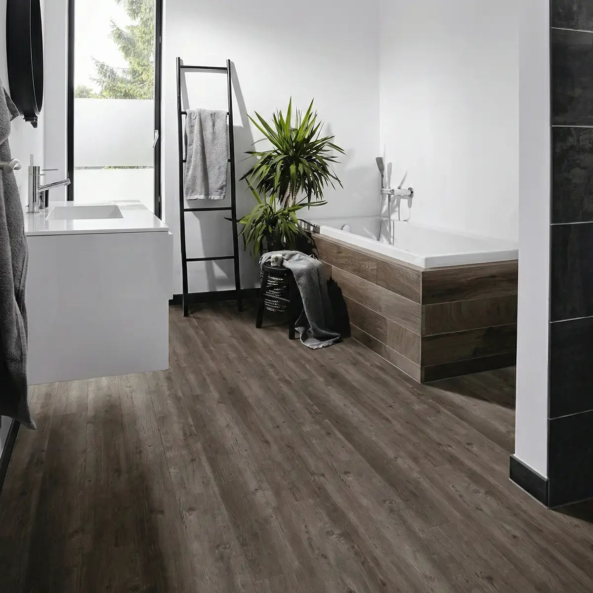 Watervast laminaat van merken zoals Quick-Step is voorzien van een waterbestendige coating tot in de groeven, zodat er geen water kan binnendringen in de planken. Je kunt ook kiezen voor watervast laminaat van zware kwaliteit, zoals Premium XL of Concrete XL tegels. Voor al het laminaat geldt: leg het niet in het douchegedeelte, want het materiaal is niet geschikt voor grote hoeveelheden water. Alle laminaat vloeren voor de badkamer kun je rondom afwerken met een elastische kit, die verkrijgbaar is bij Carpetright.