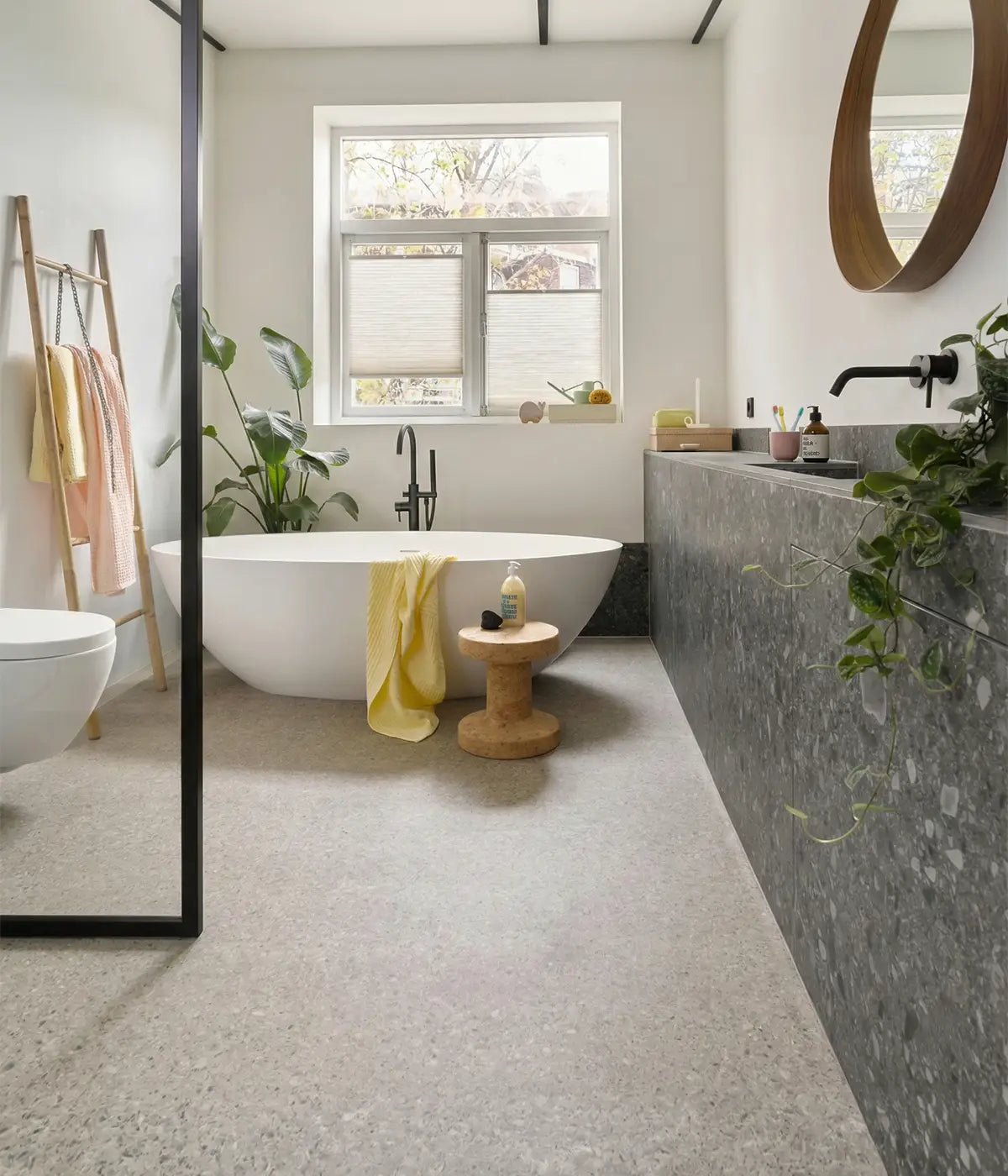 Vinyl vloer badkamer: van Hongaarse punt tot terrazzolook